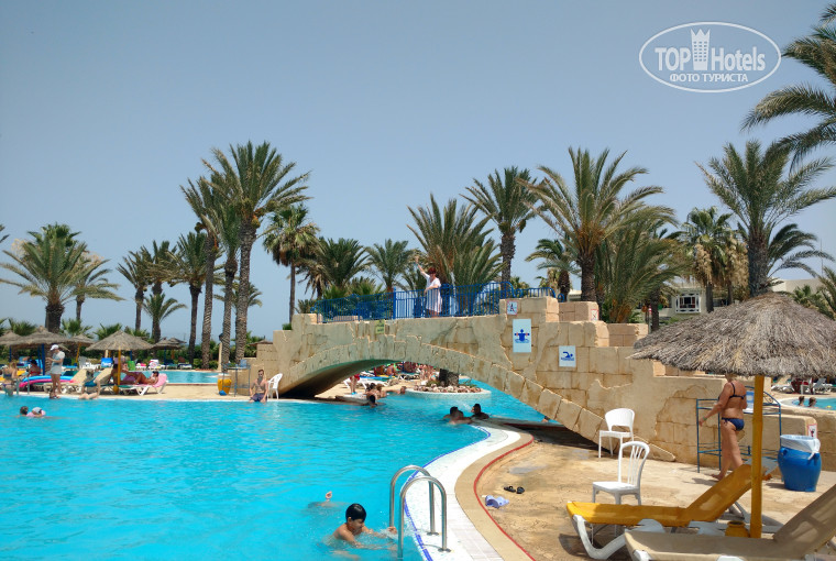 Мы с подругой отдыхали в этом отеле в июле 2018г. Начитались негативных отзывов перед отпуском, приехали, что называется, "в ожидании проблем". А зря. С номером проблем не было, заселили минут за 40, хотя приехали мы в 10 утра. Номер, конечно не новый, но видно, что только что после ремонта: все свежепокрашенное, сантехника, плитка, полотенца, белье-подушки-матрасы - все новое, без пятен, все работало, открывалось-зарывалось, вода холодная-горячая была всегда, кондиционер прекрасно справлялся с жарой. Воду в бутылках без ограничений можно брать в "детском" баре (это он там так называется) и в кулере в ресторане. Еда приличная, главное - все всегда свежее. Ассортимент не такой, конечно как в Турецких 5*, но всего достаточно было. А 1 динар чаевых (25 рублей) официанту просто творят чудеса: на обед и ужин у нас всегда на столе стояли живые цветы, бутылка холодной воды, бокалы и стаканы с холодным пивом, причем в процессе трапезы он отслеживал наши опустевшие стаканы и приносил еще пиво. Горничная тоже старалась: белье поменяла 1 раз за 10 дней, полотенца - каждый день, полы всегда были чистые и в номере и на балконе. Ничего не пропало, хотя мы так расслабились, что даже паспорта и драгоценности не запирали в чемодан. Про море, бассейны и территорию: все большое, чистое, красивое. Убирают регулярно и сами бассейны и территорию и пляж и даже водоросли из моря, те, что у кромки воды плавают работник на пляже убирал регулярно. Лежаков в любое время предостаточно, если нет свободных, то в стороне, и у бассейна, и на пляже всегда стоят целые стопки сложенных, можно взять и поставить туда, где удобнее, проблем с ними не было. Что замечательно, что можно ставить лежаки и на газоны по всей территории - там очень красиво: лежишь на травке, под пальмами.....Красота! Мух-комаров не видели. Аквапарк замечательный, охрана на горках организована, следят за безопасностью отдыхающих. Лично мне очень понравилось, рекомендую всем, кто ищет бюджетный вариант. А, забыла минусы: меня покусала (или как это называется) медуза, сильно очень. Так она к отелю отношения не имеет, а мужчина-охранник на пляже очень помог, спасибо ему (принес помидор и растер места укусов, боль быстро прошла, правда следы до сих пор видны). Анимация есть, но нам не "глянулась" (на вкус и цвет, как говорится), а люди развлекались и днем и вечером, значит понравилось. Из напитков нам понравилось только пиво, его холодненькое!!! в любое время наливают и в лобби-баре. и в баре, и на пляже, и в ресторане, нам вполне хватало. нет лифта в отеле, хотя корпуса 5-и этажные. Нам не проблема, а сотрудник отеля "пер" наши чемоданы по лестнице на 5 этаж, а это 45 кг!!! Дали чаевые. Опять "плюсы": Детишкам раздолье: есть детская площадка (очень приличная и новая), в аквапарке отдельный бассейн и горка для детишек, да и в больших бассейнах есть пологие спуски, там малышне тоже раздолье. Теперь все.