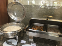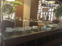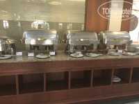 Питание однообразное, но для утреннего завтрака нормально. Вход с 6.30 до 10.00ч. Из горячего только пять чаш – в первой чаше супчик или каша, во второй и третьей сосиски и ветчина, в четвертой – рис или лапша с овощами, в пятой – картофель или овощи тушеные, иногда была курица. Штук 5 разных приправ. Из овощей – помидоры и огурцы, капуста с морковкой и луком, листья салата, к ним майонез и кетчуп. Напитки – молоко, кофе, чай, 2 вида соков. Хлопья и йогурт. Тосты из 2 сортов хлеба и булочки одного вида которые быстро заканчиваются, масло и 2 вида джемов. Мелко нарезанный микс из фруктов и только 2 вида фруктов, в основном арбуз и ананасы (в разные дни чередуют с дыней и папайей). Отдельная стойка для приготовления 4 блюд из яиц (вареное яйцо, яичница, омлет, омлет с овощами).