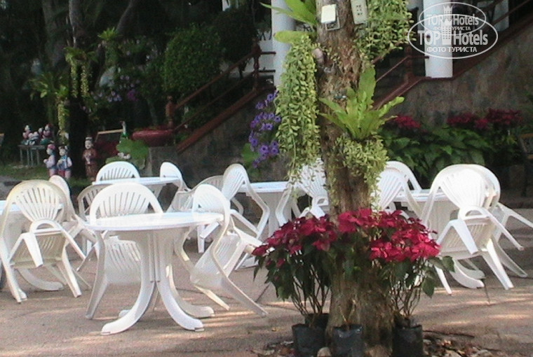 - В отличие от многих других отелей рядом нет помойки, также в отличие от многих других отелей окна на улицу не выходят прямо на дорогу, а на маленький дворик с деревом увитым лампочками с лавочками, где очень мило поболтать вечером.