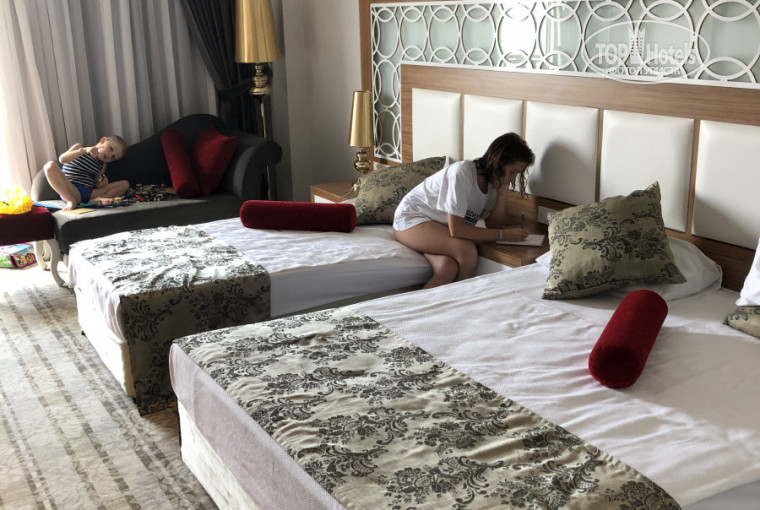 В Justiniano Deluxe я замечательно отдохнула вместе с детьми. В Турции мы были не в первый раз и так как чаще всего, я путешествую с ними одна, то стараюсь подбирать вариант размещения, который удовлетворял все наши пожелания. Отель полностью соответствовал нашим ожиданиям. Заселили нас вовремя. Номер очень хороший с видом на море. Уборка каждый день. Полотенца меняли по требованию, постельные принадлежности раз в три дня. Однажды дети испачкали простынь клубникой и все поменяли вне графика и без лишних просьб. Горничная сразу подстроилась под наш график и успевала навести порядок до обеда, потому что после, мы обычно отдыхали в номере. Питание хорошее, недочёт скорее в организации работы ресторана, связанное с размещением гостей за столами, особенно на ужин можно не найти свободное место. По просьбам детей, мороженое хотелось бы два раза в день, особенно после обеда, когда жарко, а лучше вместо и побольше. Анимация очень активная. В течении дня всегда есть чем заняться и детям и взрослым. Каждый вечер разнообразные шоу-программы. Все что заявлено об отеле на сайте полностью соответствует действительности, никаких «подводных камней» нет. Персонал очень отзывчивый. Самое главное позитивный настрой и хорошее настроение. Спасибо за прекрасный отпуск и хорошее настроение.