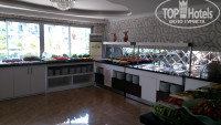 Ресторан: качество еды на 5, выбор удовлетворительный. Мясо, рыба или курица есть всегда, несколько гарниров, вкуснейшие булочки и маринованные перчики, зелень, овощи, фрукты (арбузы, дыни, персики, сливы, виноград, яблоки). И картошка фри, и наггетсы бывали - дети голодными не останутся. Турецкие классические десерты на обед и ужин, выбор есть, но мы не любители. Удобная терраса со столиками над бассейном. Грязные тарелки убирают быстро. На счет очередей: если прийти к началу, или через полчаса-час от начала трапезы, то никаких очередей нет. Еду докладывают. Просто раздача расположена полукругом, и все друг за другом идут и накладывают по порядку, это нормально, никто не пихается и не лезет. Когда мы выезжали в 19.05, нас пустили пораньше, чтобы мы успели поужинать.