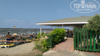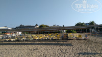 Пляж: грязноват. На берегу песок, дно - песок и галька, мы отходили купаться на соседний пляж Каретты, там поприятнее дно. Море бывает очень спокойное, иногда штормит. Бар на пляже открывается около 10.00. Душ есть, лежаки бесплатно, их всегда хватало. До пляжа 5 минут идти.