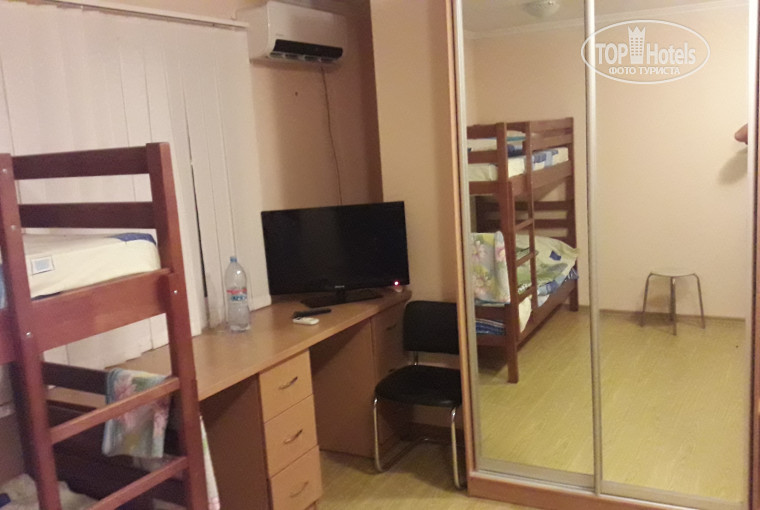 Хостел располагается на двух-трех этажах и имеет разные категории проживания. В моей категории были две двухэтажные кровати, шкаф, стол, плоский ТВ, кондиционер. Удобства на этаже (два санузла с душем и ванной).