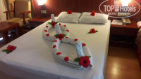 Убирали нормально, хоть и не идеально. Полотенца меняли также регулярно. Телевизор показывает 5 русских каналов (ОРТ, Россия 1, ТНТ, что то еще было, не помню). Мини-холодильник при заезде был заполнен разной водой, потом - не пополняли, хотя вроде должны были. Мы не грузились - на территории отеля большой выбор напитков - от питьевой воды до турецких аналогов фанты и лимонада.