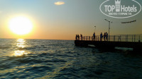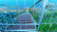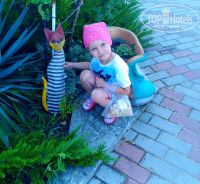 Отдыхали в конце августа с семьёй с 4-летней дочкой. Отель располагается у самого моря на возвышении в дачном массиве Орловки где-то в 20 км от Севастополя. Приехали на машине в час ночи: позвонили хозяевам, тут же вышла администратор (она же повар) во двор , проводила нас с дочерью в номер, открыла ворота для машины, все остальные формальности остались до утра. Номер был стандартный двухместный с 2 отдельными кроватями. Туалет с умывальником находятся в номере, а вот душ располагается на этаже на 2 номера. Номер и бельё были чистые. Есть и телевизор, и холодильник. Стол и стулья располагаются на общей лоджии, но отделены от соседнего номера стойкой для сушки полотенец. В стоимость номера входит завтрак. Кафе располагается на улице под навесом у входа и с видом на море. Есть и обычные столы, а есть постаменты в восточном стиле с низким столом, коврами и подушками. В завтрак входили каша на выбор плюс основное блюдо (яйцо вареное с сосиской, или яичница простая, или с помидоркой, или омлет и другое), чай-кофе, хлеб, масло. Все хорошо приготовлено. Можно было заказать обед и ужин по меню. Но так как мы постоянно были в разъездах по достопримечательностям Крыма, то поужинали только раз. Магазинов поблизости мы не нашли (да и не искали) может быть пропустили, но в кафе есть и лимонад, и сок, и вода, пиво разливное, вином не торгуют, различные снеки. Есть 2 пляжа: свой и общественный. К своему надо спускаться по лестнице, на полпути можно посидеть на скамеечке. Вечером там можно уединенно полюбоваться закатом. Общественный находится метрах в 200 от отеля. Проходишь вправо по пологому заасфальтированному спуску до частной собственности и вот он пляж. И там и там - песок с небольшим количеством камешков. Общественный пляж делится на платный с шезлонгами и бесплатный. Есть небольшая детская площадка (горка и пластмассовый домик). При выходе с пляжа есть душ для мытья ног от песка. За частной территорией просматривался и другой пляж, но мы там не побывали. Я так предполагаю, что он является официальным пляжем Орловки. На территории отеля есть беседка, шезлонги и различные интересные скульптурки. При возникновении бытовых проблем (сломался ключ в замке) хозяева всё быстро исправили. Очень рекомендую для тихого спокойного отдыха вдали от суеты больших приморских курортов. Про общественный транспорт и экскурсии не могу ничего добавить, так как везде ездили на своей машине самостоятельно.