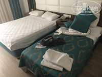 Номер. Номер в принципе неплохой. Достаточно новый. И все было бы хорошо, если бы за номерным фондом следил менеджмент. Убрали после предыдущего выселения очень плохо. В стыках ламината мусор. Раковина с белым налетом. Полотенца рваные. На потолке в душевой плесень. Про такую жесть как туалетный ёршик даже писать противно. На стенах разводы от грязной тряпки.