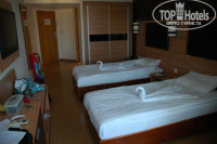 НОМЕРА достались в старом корпусе с видом на бассейн на 3-м этаже. В номере (315) все новое. Только вот сейф платный 2$ сутки. Отдавать за 10 дней 20$ мы не стали. Деньги, часы, зеркальный фотоаппарат, комп и др. оставляли спокойно в номере - без проблем. Горячая-холодная вода круглосуточно. Уборка номера ежедневно. Смена полотенец через день. Белье меняют раз в неделю. Качество стирки хорошее. Горничные - турчанки ежедневно пополняют мини-бар 0,5 литра воды на человека бесплатно. В день заезда в мини-баре помимо воды бутылка колы и сок. На ночь рекомендую закрывать балконную дверь и включать кондей, т.к. наши соотечественники, могут до утра продолжать возлияния на соседнем балконе. Да и за час до рассвета муетзин с минарета минут десять голосит не хило. Кондей в номере еле справляется.