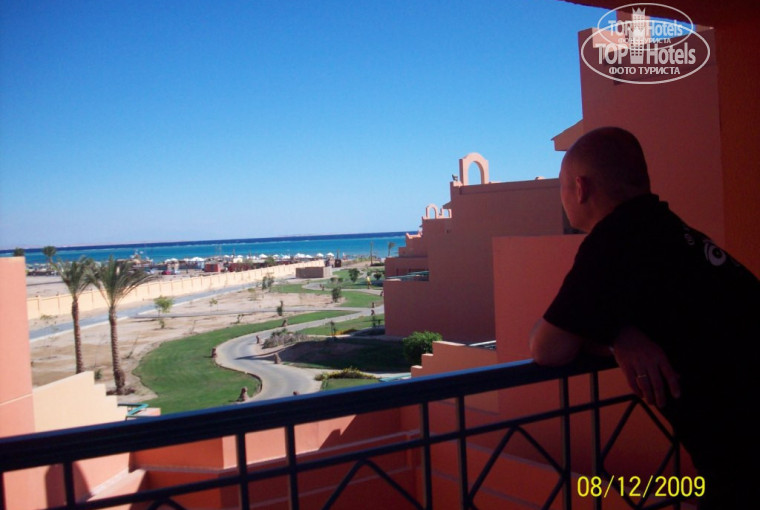 Номер был в левом крыле отеля. Очень удобное расположение. Окна выходили не во двор, а на наружную сторону. Лицом к морю, а внизу просто зелёная лужайка с тропинкой и тишина…Левее через дорогу большой белый отель RAOUF HOTELS International, но он пока пустует.