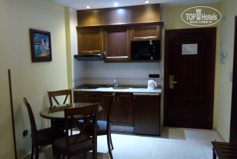 Брали апартаменты со спальней. Добротная мебель, тостер, чайник, микроволновка, холодильник....Уборка каждый день. Все очень чисто, уютно, достойно.