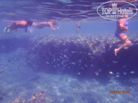 море. возит большой старый автобус с 9-00несколько раз. назад с 12-30 несколько раз. после обеда тоже. утром на завтраке быстро пили чай с булками, складывали с собой бутерброды из того, что было, и шли на пляж пешком. выходили в 7-45 в 8-15 уже на море. шли ровно полчаса. за 20 минут , как писали ранее, нужно точно бежать. до пляжа крутые ступеньки и их довольно много. многим это может быть неудобно. после приезда последнего утреннего автобуса лежаки уже нужно поискать. бар безалкогольный с 10-00. есть пиво по 3$. анимация-зарядка боча волейбол йога и т.п. парашют 20уе на двоих подъем 5-7минут. плюшка 10 уе 1чел. остальное не помню. в море с понтона или с берега. аккуратно можно и босым, мы были без коралок и без травм. риф хороший, рыб довольно много, но без экзотики. не хватает какого-нибудь ручного наполеона, как на некоторых пляжах, тогда было бы совсем супер. все морские фото с отельного пляжа...