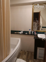 Номер с балконом (выходит во двор на бассейн), 2мя кроватями (1,5 и 2х спальная), тумбы, зеркало, письменный стол,шкаф, также большой холодильник, чайник и кружки (без пакетиков кофе,чая,сахара). В ванной комнате унитаз, раковина иииии ванная, причем достаточно большая. Ванный набор - 2 маленьких и 2 банных полотенца, ножное, шапочки для душа, ватные палочки, бутылочки геля, шампуня и мыльца. В шкафу электронный сейф, зонтик, 2 банных вафельных халата.