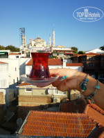 Вид из террасы на море и Голубую Мечеть. Нам с погодой не повезло и поэтому на террасе, к сожалению, не задержались.