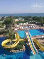 Утром мы позавтракали, сходили в бассейн и местный пляж и к 12 часам были готовы переезжать, но по приезду (5 мин), нам сказали что пока до 14.00 тоже заселить не смогут, но в качестве бонуса можно выбрать номер - чем мы и воспользовались (а вид с окон действительно разный с разных сторон, у кого на поле у кого на соседний отель - у нас на море). Кстати если зарегистрировать заранее поездку на сайте и присоединитесь к группе отеля - получите бонус при заселении - шампанское и фрукты. Да еже бонусом получили бесплатный wi-fi.