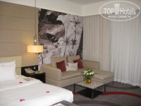 Номер большой с высокими потолками, в комнате большая кровать, диван, рундук, телевизор, радио с часами, журнальный столик. Отдельно гардеробная где находится в том числе сейф. Ванная комната: ванна, раковина, фен, душевая кабина, халаты, тапочки, набор шампуней, три вида полотенец. Белье, полотенца, меняются ежедневно, шампуни пополняются по мере необходимости в течение дня.