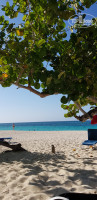 2. Пляж обалденный! Огромная лагуна, песочек, на пляже и зонтики, и пальмы, и деревья-тени предостаточно, лежаков в избытке, по вашей просьбе сотрудник дотащит куда укажете. На пляже 2 бара, в том, который справа, если смотреть на море мы обедали. Одно и то же, но свежее и вкусное- рыба, картошка, салат. Зато какой вид! И не нужно с пляжа уходить.