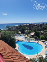 5) Номер на 5 этаже, с хорошим видом на территорию отеля и море, правда, для двоих он маленький. Я отдыхала одна, и мне было комфортно. Чувствовала себя как дома. Перед сном включала телевизор и засыпала под развлекательные передачи по ТНТ. У меня в номере все исправно работало, правда несколько негативных отзывов я слышала. Села батарейка, ничего страшного! Сезон только начался, так что я думаю, эти мелочи быстро исправят.