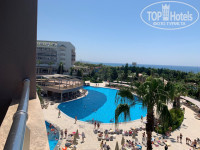 Прилетели в Турцию 22 мая авиакомпанией AzurAir (жирный минус, не рекомендую, обратно летели а/к Россия - вот они молодцы!). Туроператор Интурист в принципе без нареканий - встретили, довольно быстро собрали всех в автобус, дорога в отель заняла примерно 2ч20мин (наш отель был в списке третий, но водитель его проехал и сначала завез отдыхающих в другой отель, а только потом нас). Ребенок 2,7г выдержал дорогу нормально, хотя обычно его трудно удержать на месте, но видимо перелет и новые впечатления сделали свое дело)) В отель приехали около 8ч вечера, нам сразу надели браслеты и отправили на ужин. После ужина безо всяких доплат предложили на выбор 2 номера - с прямым и боковым видом на море. Мы выбрали конечно же вид на море и ничуть не пожалели! Наш номер был 1255, это самая дальняя часть от ресторанов, ближе к зоопарку. Сам номер довольно маленький, но балкон огромный и вид из окна чудесный! Первые дни немного напрягал шум от дороги и иногда живая музыка в баре по вечерам (мы, к сожалению, не ходили на вечернюю анимацию, так как ребенок спал в это время), но потом привыкли. В целом, номер чистый, все исправно работало. Запах от зоопарка иногда доносился по вечерам, но только на балконе, в самом номере не чувствовался. Уборка каждый день, что удивительно, чаевые и шоколад (оставляли на кровати) уборщица не брала, пару раз силой ей дали при встрече))