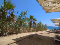 Пляж в 5-7 минутах ходьбы или 2 минутах езды на электромобиле. Дорога к морю облагорожена, газонная трава, кустарники, посаженные маленькие кактусы и шикарные сосны, очень приятно прогуляться утром до моря пешком. В первых числах июня народу было не много и свободные лежаки можно было найти всегда, но видать с началом летних каникул к 10 утра хорошие места найти уже проблематично. Сам пляж чистенький, естественно кое где видел бычки, пластиковые стаканы из под воды, но в глаза особо не бросается. Везде имеются урны, деревянные дорожки, перед территорией пляжу имеется футбольное поле и место для волейбола, что очень удобно, так как уверен что в тебя не прилетит шальной волейбольный мяч, там же расположена детская игровая площадка для маленьких. Перед входом в море пару метров придётся пройти по гальке, вход достаточно глубокий, пару метров и глубина зато море более прозрачное и имеет красивый голубой цвет. Днём песок сильно нагревается и даже по настилу босиком идти не приятно, сланцы в середине дня обязательны.