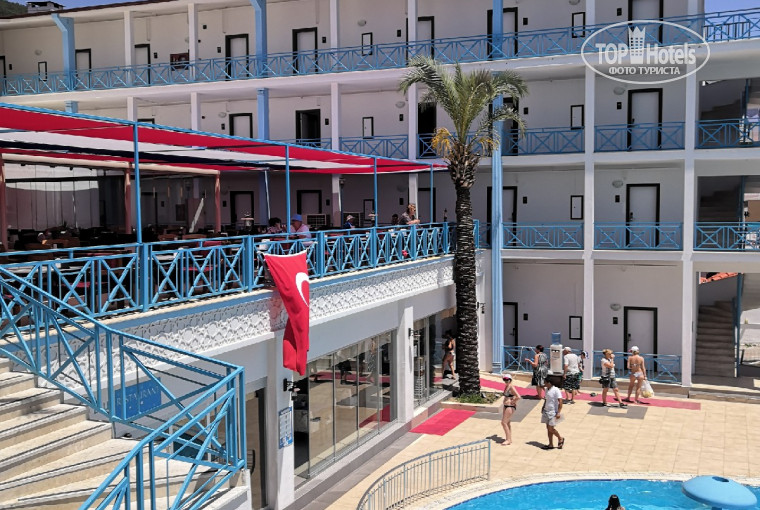 Выбирала недорогой отель для отдыха с семьёй. Отзывы про этот были кошмарными,но цена уж очень привлекательная около 60000 на троих (2 взрослых и ребенок) за 12 ночей. Считаю, что этих денег он вполне стоил. Да и вообще столько дней на море за такие небольшие деньги - это большой плюс. Мы покупали ГОРЯЩИЙ тур. Начну с заселения - в отеле мы были приблизительно в 11-12, заселяют позже, поэтому мы положили чемодан в подсобку и пошли отдыхать. Не помню точно во сколько нас заселили, муж на ресепшене немного доплатил и номер нам дали на втором этаже с балконом. Вид был на гору и на подсобные помещения, где вечером собирался персонал. Из недостатков номера - небольшая плесень в душевой и самый главный - очень громко работают кондеи. При чем от них шёл какой-то такой прям гул низкочастотный, поэтому чтобы спать мы просто переворачивали подушки на противоположную сторону кровати. Убирались у нас в номере почти каждый день (заправляли кровать,меняли полотенца), мы оставляли на чай несколько раз. Воды горячей иногда не было, стабильно она была только после обеда, мылись в чуть теплой иогда. ЕДА - из мяса в основном была курица в различных вариантах, один раз была как шаурма на вертеле, реже рыба, гарниры - макароны, рис, картофель фри, различные салаты, на завтрак - вареные яица, колбасные нарезки,сыры иногда готовили на гриле блинчики, яичницу, иногда были каши. На обед бывают супы, я не брала,муж пару раз брал, ему понравилось. Различные турецкие сладости, как везде. Из фруктов - дыни и арбузы (иногда сладкие иногда нет,как повезет), один раз давали яблоки. Мне очень нравились всякие лепешки и мини-пиццы. Из напитков - вино, пиво, соки-юпи. Персонал очень хороший в ресторане. Правда из минусов - было очень много народа, люди зачем-то толпились у дверей перед обедом и ужином, наверное, чтобы побыстрее занять места, мы старались ходить не к началу обеда-ужина, а спустя час например, блюда регулярно пополнялись, можно было пропустить только какие-нибудь десерты в стаканах, ну да бог с ним. Территория отеля очень маленькая, почти всё в асфальте. Из плюсов - это горки,которые по часам включают, ребенок любил на них кататься. Из минусов очень мало лежаков у бассейнов и они почти всегда заняты. Воду из кулеров лучше не пить, а покупать свою. МОРЕ - как и обещано около 400м от отеля. Мы ходили на "дикий пляж", который слева от пляжа нашего отеля, тк я не очень люблю купаться среди большого количества людей, загорали на полотенцах, несколько раз после обеда ходили и на пляж отеля - тесновато, но зато можно с кем-то пообщаться или послушать интересные разговоры...а еще если там плавать к пирсу,то увидеть много рыбок и другую морскую живность - звезд, осьминогов. На пирс вроде не пускают посетителей других отелей, но у меня ребенок иногда с него прыгал, когда там никого не было. Море с утра очень чистое, вода кристальная. Сами себе устроили экскурсию по тропе до флага - советую пройтись, очень красивые виды. Ездили в Кемер, до него добираться минут 15 на маршрутке. А еще ходили в соседний Чамьюва смотрели заброшенный отель. Кому интересно еще АНИМАЦИЯ всегда была в отеле - вечером ходили несколько раз очень понравилась, было действительно весело, перед ней всегда мини диско для детей. А еще в обед у бассейнов тоже устраивают всякие конкурсы, дартс и тд. После анимации слышала,что возят в кемер в их