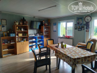 В основном корпусе - кухня, зона отдыха, туалеты, душевые.