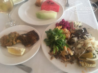 Питание, конечно, не на пятерку. Немного однообразная еда, особенно десерты. На завтраки - каждый день яйца в разных видах, хлопья, тосты, колбасы, сыры, арбуз, свежие булочки разных видов, очень вкусные, иногда сосиски, молочная каша, один раз были оладушки. Обеды мне показались самыми скромными по выбору еды, все больше запечено-тушеной еды (мясо, рыба, различные запеканки), очень много разных овощей и зелени, салатов, вкусные арбуз и дыня. Десерты разной формы, но похожие по вкусу, желейно-суфлейные пирожные и торты, много пирожных из манки, бисквиты с не очень вкусным кремом. На ужины всегда выбор был больше, мясо или рыба гриль, курица, шашлычки на гриле, шаурма и т.п., те же овощи-фрукты, зелень. Из фруктов - арбуз, дыня, яблоки, апельсины, сливы. Десерты - те же, что и на обед плюс добавлялась иногда очень вкусная пахлава нескольких видов или десерты из фритюра (вроде, называются "тулумба"), политые сиропом, тоже очень вкусные. Чай пакетированный разный или турецкий в заварнике, кофе из автомата. В общем, никто не голодал, всегда можно было найти блюдо по своему вкусу. Понравилось, что работники ресторана следили за порядком, чтобы всем гостям было комфортно. При мне делали замечание парню с голым торсом, а также юному ютуберу, который обедал в обнимку с планшетом, включив звук на полную громкость.