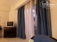 Номер стандарт. Большая удобная кровать, можно спать троим. Телевизор, туалетный столик с зеркалом, две прикроватные тумбочки, , холодильник, два кресла со столикои и два стула. На прикроватной тумбочке стоял торшер. В санузле ванная, над ванной есть верёвка для сушки белья (за ночь всё высыхало), шкаф для одежды с вешалками и бесплатный электронный сейф. Фен тоже был. Мощный. Все номера с балконами. На балконе стоял столик и два кресла.