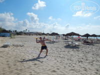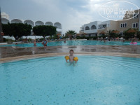 Размещение. С аэропорта добирались меньше 2 часов. При заселении вложили в паспорт 20$ и получили небольшой, тихий (если не считать соседей) тенистый и чистый номер с отдельной кроваткой для ребенка. Все работало, кроме пульта от телевизора (замена батареек не помогла). Номер 703 находится рядом с ресепшеном на первом этаже. Ползающие насекомые не беспокоили, от летающих был взят фумигатор. Так как кондиционер работает еле-еле, то плюс номера - постоянное нахождение в тени. Территория отеля немаленькая и зеленая. Имеется три пары бассейнов (детский/взрослый): одна пара с анимацией и баром, одна пара для тихого отдыха и пара бассейнов в аквапарке с 5 взрослыми и 2 детскими горками. Отель находится на берегу моря, пляж - отличный, с шикарным не раскаляющимся песком. Вход в море пологий песчаный, детишкам удобно. Море в штиль чистое, при волнении поднимается муть. Медуз не видели.
