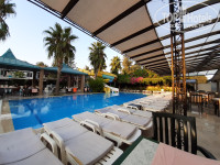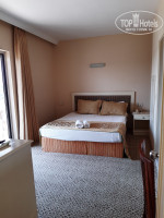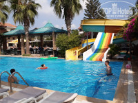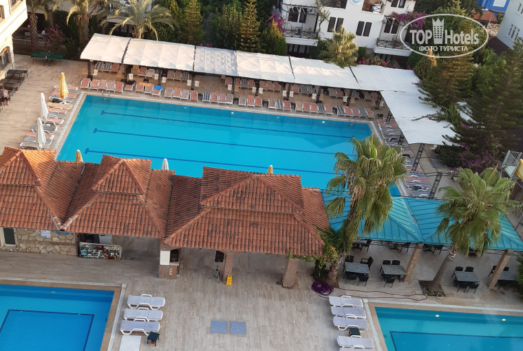 с 2 ТВ, 2 кондиционерами, 2 санузлами, холодильником и огромным угловым балконом. Но с видом на шумную дорогу и солнечная сторона. К шуму привыкли, от солнца днём глухо зашторивали окна плотными портьерами. Номер убирали каждый день, бельё меняли. Территория отеля небольшая, но можно прогуляться. На первом этаже есть магазинчики. Главный 7-этажный корпус с большой смотровой площадкой на верхнем этаже, семь 3-хэтажных бунгало, много 1-этажных номеров, как по обе стороны за отелем, так и за всеми бунгало. Три бассейна, две горки, сауна, хаммам. Анимация для детей однотипная каждый день, потом караоке, "Турецкая ночь", дискотека. Море далеко, ходит ужасно старенький автобус (окна не открываются!), душно, ездит не часто, народу много, кто успел, тот и сел или занял стоячее место. Не надо в этот отель ехать с маленькими детьми и пытаться залезть в автобус ещё и с коляской. В 30 минутах ходьбы парк развлечений "Земля Легенд", шоу фонтанов в 22 ч бесплатно. Обязательно к посещению. Мы ходили и после даже попали на концерт Егора Крида. В 25 минутах ходьбы есть парк Толерантности (храм, мечеть и синагога), бесплатно, работает до 18ч. В 40 минутах ходьбы магазин Мигрос с приятными ценами, принимают оплату по картам. Можно конечно эти расстояния преодолеть на автобусе за 1 доллар, но мы гуляли пешком, хоть какое то движение. Про питание расписывать не буду, выбор есть. Будьте избирательны, берите не всё в одну тарелку сразу, чтобы потом не говорить на третий день, что еда одна и таже. В столовую не ходите к открытию, это похоже на взятие Бастилии)) Подождите, пока самые голодные уйдут)) Еда никуда не денется, её много, постоянно пополняют, на всех хватит! Ребята, молодцы, работают как пчёлки, быстро стараются убрать, заменить, накрыть. Повторяться не буду, итак моё мнение: начну с "плюсов": близко от аэропорта (25 минут), хороший двухкомнатный фэмили рум в главном корпусе, бар на пляже, питание в столовой, относительно рядом парк развлечений, море шикарное, тёплое, пляж песочный. Ну а "минусы": курят везде!!! и за столиками, у бассейнов, на пляже (я за эти 10 дней в жизни столько никотина не ела!), ужасный интернет, только в лобби, работал только вайбер, остальное можно было словить ночью или рано утром, мухи!!! их очень много в столовой, хотелось посидеть на свежем воздухе, где мух нет, но там море курильщиков, отравляющих воздух всем и детям в том числе, два тормознутых лифта в отеле, которые останавливаются на всех этажах подряд, не зависимо от направления движения кто вверх, кто вниз едет, лифт открывает двери всем))), дряхлый автобус-сауна без окон, ну и грязный пляж (это вина самих отдыхающих, окурки, мусор). Итак решение за вами, друзья, а наш отпуск удался, не смотря на наличие "минусов", приятная цена тура и офигенное море сделали наш семейный отдых удачным))) Дети и мы остались довольны.