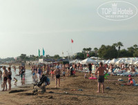 От отеля до пляжа идти 2 максимум 3 минуты, это реально первая линия. Пляжные полотенца в спа депозит 5$ за штуку,вечером сдаёшь,утром берёшь новые.Депозит вернули в последний день без проблем. Перед входом на пляж есть бар этого отеля, там напитки бесплатно, перекус (гамбургеры,салатики,картошка фри),пекут лепёшки,там же есть туалет. Платно за 3$ вкусный фреш из клубники,мороженое 1$ так себе. Пляж песок. Зонты,лежаки-бесплатно,но занимать надо рано утром. После завтрака уже пустых нет. Рядом с левой стороны пляж отеля MERVE 4*,cам отель видимо далеко находится отдыхающих привозят на автобусе,но их мало и много свободных мест. Там работает суровый мужик Мустафа,мы нашли общий язык. Моё личное обаяние позволяло нам пользоваться не только пляжем этого отеля,но и баром. В море где пляж отеля *LARISSA* яблоку негде упасть и много камней ,советую уходите в лево за пирс,там и людей мало и камней намного меньше.Камнями в море удивлён и разочарован,тк много раз был в Сиде и всегда пляжи были идеальны. И ещё рыбки кусались(!),первый раз такое. Море было очень тёплое. Жара жуткая 40-50 градусов днём.