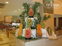 Еда хорошая, разнообразная. Мясо, птица, гарниры, овощи, фрукты, салаты, выпечка, сладкий стол - все это в изобилии и разнообразии. На завтрак кроме всего стандартного (йогурты, омлеты, яичницы и т.д) обязательно одна - две каши (овсянка, рис, манная). На отдельной стойке - диетический стол.Постоянно что то на гриле, раз в неделю устраивалась турецкая и китайская кухня на ужин. Рестораны по A la Carte не посещали. В промежутках между едой можно перекусить в различных кафе у пляжа и бара.( лепешки гезлиме, айран, сладости, напитки, фрукты, мороженное). Территория чистая, ухоженная, есть где пройтись.