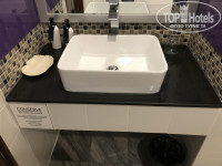 Двоякое впечатление. С одной стороны, современный дизайн (и в комнате, и в санузле), относительная чистота, кондиционер, холодильник, телек, wi-fi, питьевая вода… С другой стороны, нам достался номер с видом во двор (почти на помойку), без сейфа (хотя у большинства соседей он был) и почему-то без чая, кофе и кружек, хотя чайник был. В принципе, пофигу, но странно. Также в номерах отсутствуют балконы.