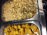 Были в отеле с друзьями с 30.11 по 02.12 (две пары без детей) на завтраках и ужинах, поесть сходили всего два раза. Это просто ужасно!! Даже не знаю как это назвать...завтрак и ужин отличаются только наличием каш, да и то на воде и больше похожи на клестер. Из гарниров серые макароны и недовареная сухая гречка, горяцее - разорванная на части куры, куски скумбрии, самые наидешевые нагетсы, превращающиеся в кашу, сосиски - соя+красители+карагинан, фркуты - порезанные на четвертинки заветренные яблоки, и это в Сочи!!! А мандарины из Абхазии, а хурма, апельсины в конце концов?? Они там по максимуму ничего сами не готовят: блины - размороженая дрянь, воняющая тряпками, теже нагетсы, салатов никаких, отдельно горошек, кукуруза, морковь, свекла (спасибо что сварили), кофеврка работает только на завтраки и их две бытовых, не ресторанных на такое количество людей - очереди постоянные...и все молчат?!! Всех все устраивает? Что кормят свинячей едой, из того что недоели на завтрак, пытаются сделать обед или ужин. Хлеб навален горой...он таки остался на три для которые мы там были - черствый и сухой. Из соусов: сметанный продукт!!! кетчуп из крахмала и красителей, все ходят в соседние столовые. На территории рестораны безобразно дорогие.