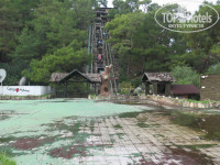 Описывать тамошнюю атмосферу можно долго..... Отель представлял собой этакий город со своей архитектурой и инфраструкторой!) Уж чего тут только не было во времена его функционирования!!!! Рестораны, бары, магазинчики.... Фуникулёр с весёлыми вагончиками катал людей с горы вниз, а по периметру рельс вагончик провожали огромные фигуры животных! Свой зоопарк, своя ферма, аллея с невероятно уютными бунгало, винный и сырный дома, бани, сауны, хамамы... Главный корпус по задумке архитектора был украшен огромными стволами и макетами апельсинов! Вдоль всего корпуса по холму ползет гигантская гусеница! А какие красивыми были бассейны и прилегающая к ним территория!!!!
