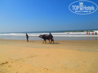 Отель очень понравился. 3* видимо, из-за отдалённости от моря. Территория ухоженная, чисто, красиво. Заселили нас сразу. Светлана, русская женщина на рецепции, учла наши пожелания и номер оказался чудесным. Соседний четырёхэтажный корпус, 1 этаж с террасой, есть всё необходимое: кондиционер, вентилятор, сейф, фен, чайник, стаканы. Одноразовые тарелки и нож с ложками-вилками у нас всегда с собой :). Разместились и сразу на море. Пешком минут 15, под вечер уже не жарко. На пути ювелирные, сувенирные магазинчики, где можно поменять деньги 71 рупия за доллар. Там же 2 кафе, массажный салон, магазинчик (чай, специи, алкоголь, фрукты). Вдоль дороги мусор, это норма для Индии. Пляж широкий, чистый, шезлонги и зонтики всегда есть. Шейк (кафе) уютный, удобный, готовят вкусно. Собак много, но они доброжелательны. Торговки, особенно Соня, отмечались у нас каждый день, не напрягало. они неплохо говорят по-русски.