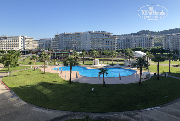 Сейчас отдыхаю в данном отеле и знаете, я таки удивлена таким большим комплексом. На территории 12 больших корпусов, оборудован ресторан для приема пищи, есть различные развлечения - ночной клуб, бары, кафе, где так же можно перекусить, есть магазины, аптека и аренда самокатов и подобных транспортных средств. Для детей есть детские площадки. Так же на территории имеются 5 открытых бассейна, которые работают с 8 до 20.00. Что касается пляжа, у отеля есть свой пляж до которого до которого идти минут 15 через КПП, которое расположено ближе к ресторану (идти прямо не сворачивая прям до пляжа). На данный момент его ещё не оборудовали, поэтому приходится лежать на крупногалечном пляже...уточнили, что после открытия пляжа лежаки будут платные!!! Цену не уточнили. заход в воду не пологий, рекомендую приобрести обувь для захода в море, так будет намного удобней. По дороге на пляж будут различные магазины с едой/пляжной одеждой и прочими сопутствующими товарами.