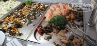 Трехразовый шведский стол + 2 промежуточных перекуса с пивом (2 сорта), арбузы,дыни,персики,сливы,яблоки...пицца,выпечка,сухарики...
