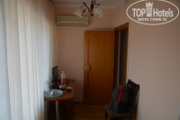 Номер небольшой, но в нём только ночевал. В наличии односпальная кровать, холодильник (важно, так как ездил на экскурсии , а Эльбрус и Домбай начинаются в 6-30 утра), ТВ, кондиционер, шкаф.