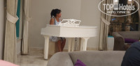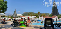 По обслуживание персонала отдельное спасибо , достойно уважения! В ресторанах убирали столы быстро и посуда вся чистая. Есть божественный айран. Голодным остаться трудно все 24 часа. Выпивка местная не плохого качества . Мартини,ликер, коньяк текилла, вино красное белое, шампанское, пиво ,орешки, молочный коктейль на кокосовом молоке. Пиво на пляже оставляет желать лучшего. Еда вкусная, пирожные божественные, панакота, всегда в большом количестве имеются фрукты, много зелени, салатики, закуска. Мороженое в упаковках. Можно купаться в море. С пирса можно посмотреть рыбок. Берите маски. Заход галечный. Лежаков много , но их всё равно не хватает. Так как менталитет людей занимают лежаки и на море и возле бассейна , а сами спят до обеда. В часов в 7 ещё можно спокойно занять хорошие места)). Отель посоветую. Анимация на высоте. Горки есть. Но на синих имеются не большие стыки. 2 детских бассейна с горкой, имеет глубину 30 см. Продается вкусная кукуруза за 1$ . Мы остались очень давольны отдыхом. Спасибо всему персоналу и шеф повару.