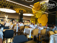 Отель огромный и места не экономили. Все огромное: холлы (их несколько, на каждом этаже), рестораны, локации, бассейны, террасы. Очень много баров с алкоголем (в т.ч. импортным- это такой бесплатный бонус для любителей Chivas и тд. Бармены - не ленивые. Стоят и колотят вам коктейли (коктейл.карта присутствует) сколько вы пожелаете. Для любителей кофейных коктейлей-просто рай. Фраппучино со сливками...Ну и т.д. Ресторан: очень строго вход только в маске и с измерением температуры, кто хочет берет бесплатную маску здесь же. Хоть каждый раз, это никто не считаем. В ресторане грамотно организованы зоны раздачи и потоки голодающих. Все удобно, эргономично и очередь в 5 человек - это 1 минута (это при том, что отель был забит людьми). Ну да, вы постоите в 5-6 очередях (салаты, хлеб, супы, закуски, основные блюда, кондитерка, фрукты). Ну и что. Время завтрака-обеда-ужина рассчитано в отеле по 3 часа. Все всё успеют. Всем всего хватит. Мясное- около 20 видов, рыба- от 5 видов блюд. Количество и качество десертов- уму не постижимо. Все и на вид разное и на вкус. Прикиньте, так бывает!!! Много локаций с питанием- можно не уходить с пляжа, можно весь день у бассейна, там та же кухня, что и в ресторане, но в сокращ.версии. НО КАК ВСЕ ВКУСНО!!!! Всем поварам и кондитерам СПАСИБО! Насыпают много, просишь "хватит", тогда останавливаются. Не жалеют, короче. Приятно, что многие отдыхающие стали понимать, что надо брать понемножку, а не горы еды. Съел- набрал еще. Мы- за разумное потребление всего. Ресторан каждый день устраивает сюрприз в виде тематической кухни. Турецкая, итальянская, рыбная тема, суши даже, мангальная тема, барбекю и т.д. Все такое разное и вкусное. И НИКАКИХ салатов с майонезами. Все нарезано, бери и поливай чем хочешь - изобилие соусов и заправок. Вегетарианская, детская и диетическая еда тоже есть. ЕЕ много, но она не отдельной зоной, а все вместе с другой едой.