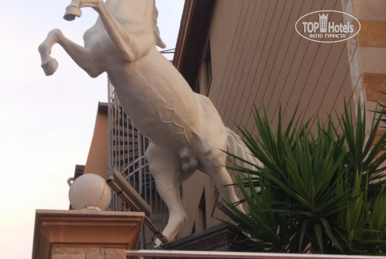Очень уютный бар в лобби на открытой террасе, белая плетенная мебель, деревья в цветах, турецкие лампы-тыквы, белые беседки, белые статуи с синей подсветкой: два коня по бокам, и баба с факелом по центру; наш номер выходил на него. Народ брал колонки, танцевали до 12.00 ночи, разрешали без проблем (дискотеки в городе все закрыты). Официанты молодые и позитивные ребята. Понимающие.