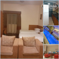 Минус - постоянно темно в номере ( 3 черных здания отеля стоят друг возле друга, свет практически не пробивается ). Номер большой , но мебель не новая, для ночлега - нормально . В отеле работает тренажерный зал и бассейн .