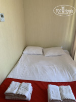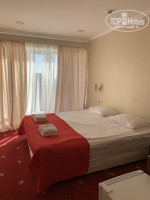 В номерах: крючки для верхней одежды, небольшая тумба для обуви, шкаф с вешалками (в нашем номере висели 2шт) и одна полка, кровать (полуторка), прикроватная тумбочка, пуфик, холодильник, современный телевизор, на балконе 2 табуретки и сушилка, в санузле есть фен, косметические принадлежности (мыло, шампунь, гель), 2 больших полотенца, 4 маленьких + полотенце для ног.