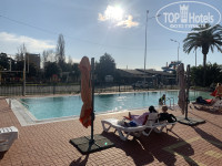 На улице есть бассейн (вроде подогреваемый, но для меня очень холодный), лежаки, скамейки, небольшая детская площадка (большая есть за забором), парочка беседок.