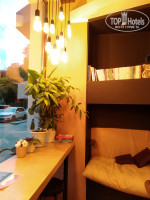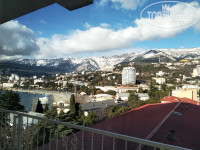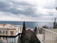Есть общая зала с обеденной зоной, кухней (где можно пользоваться посудой, микроволновкой, кулер с водой) и балконом с видом на море и набережную Ялты.