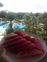 Питание. Отличное! Несмотря на то, что до закрытия оставались считаные дни – ассортимент был хороший. Разнообразные завтраки (даже сырники были! невероятно вкусные), обеды и ужины в основном ресторане. Много мяса, рыбы, овощей и фруктов. Есть аля-карты, отличный сервис и подача блюд. В отдельном помещении выдают мороженое и сладости. Кофейня на улице – это просто моя любовь, очень вкусный турецкий кофе, капучино, приятно сидеть в окружении зелени и цветов. Ресторан на пляже (вечером - аля-карт) – там можно пообедать, ничуть не хуже главного ресторана, но в главном, конечно, ассортимент блюд шире. Неплохие бары – вода, напитки, алкоголь (виски, ракия, джин, вино, баллантайз был кстати).