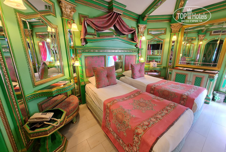 Разместили быстро, номер был club (зелено-розовый) , ожидали худшего, но в итоге оказалось даже интересно, очень много зеркал. Но! Только одна розетка😂, что конечно в современном мире недостаточно. Есть ещё в ванной и при входе в номер, но это не решает вопрос. Что точно на 5+ это питание. Разнообразно и огромное количество всего.