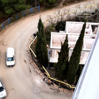 Территории практически нет👎. Вдоль вдоль здания на расстоянии максимум 10м серпантином идёт дорога вверх по которой идут большегрузы на стройки , что выше и буквально у стены санатория. А строек здесь буквально на каждом метре.