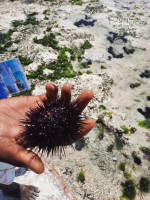 Есть пирс, он 340 шагов, т.е приблизительно 250 метров. По нему вы доходите до белого печсока и купаетесь. Мы также ходили напрямую от нашего бунгало, через поля с ежами, и немного переплывали, чтобы попасть на появляющийся в отлив остров. Дальше можно пройти в сторону большого рифа и там есть кораллы и рыбки. Видели несколько морских звёзд. Купались в любое время дня, т.к у нас гидромайки и не обгораешь. Купаться лучше в отлив, но сами разберётесь.