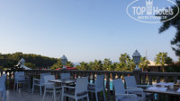 Ресторан не очень большой. На ужин лучше приходить сразу к открытию или договариваться с официантом (не безвозмездно)) и бронировать столик. Они его еще и украсят тогда дополнительно. С открытой террасы ресторана утром красивые виды на море, вечером море почти не видно, но все равно сидеть там очень неплохо. Внутри ресторана в зале скучно и неуютно. Поэтому там мы только обедали. В обед там работает кондиционер (слабенько, правда, но работает), а на террасе жарковато, хотя официанты и раздвигают большие зонты, но они не спасают от жары.