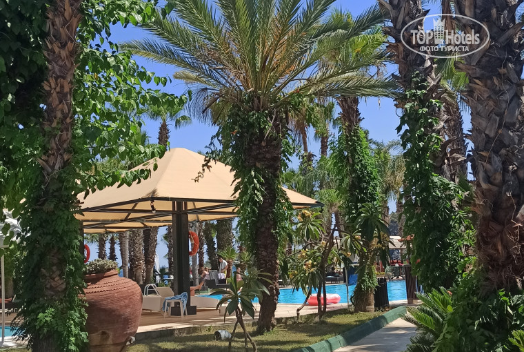 Територия не большая чем и удобная! - всё продумано очень компактно и удобно: море бассейн, бар, ресторан, детская территория, спацентр, сцена - всё находится в поле зрения.
